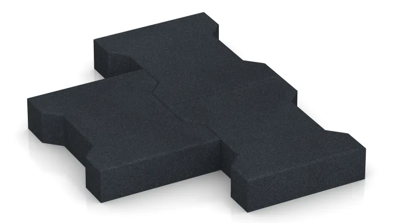 Los adoquines de caucho de WARCO están fabricados con granulado de caucho ELT aglutinado con PU (ELT = End of Life Tyres). Cada pieza presenta la clásica geometría en H/doble T (formato BEHATON), de modo que la superficie resultante mantiene la estética del adoquín de hormigón y puede combinarse con él sin problema. La diferencia está en el material: la goma es menos rígida que el hormigón y aporta otras prestaciones—elasticidad, confort acústico y cierta absorción de impactos.