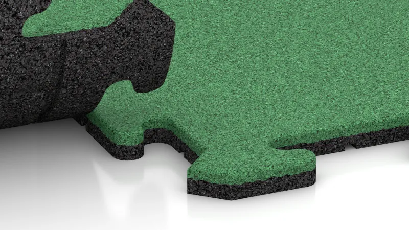 Las baldosas se colocan en seco, es decir, sin fijación permanente, directamente sobre una base plana y estable. Los bordes de encaje se ajustan con precisión y forman una superficie uniforme y estable que permanece firme incluso ante pequeñas irregularidades. Las piezas de borde se cortan fácilmente con una sierra de calar o una circular. La instalación es rápida, limpia y no requiere tiempos de secado ni materiales adicionales.