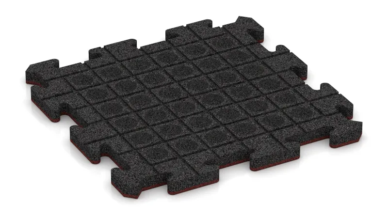 La baldosa de seguridad con encaje tipo puzzle es un revestimiento diseñado para reducir el riesgo de lesiones por caídas de baja altura. Está certificada según la norma EN 1177 y se utiliza debajo de juegos infantiles, en gimnasios, espacios multifuncionales, zonas de artes marciales o áreas de entrenamiento al aire libre.