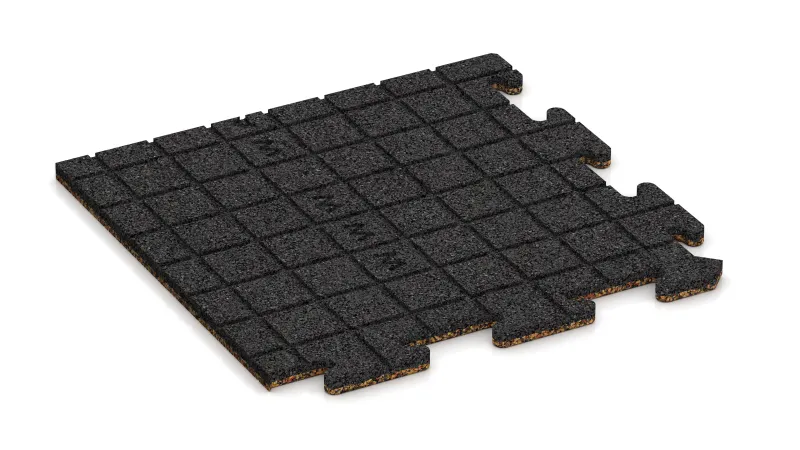 La loseta de esquina HD proporciona un acabado preciso y duradero en las esquinas de superficies instaladas con losetas de alta densidad. Cada unidad corresponde a un cuarto de una loseta puzzle completa: los lados interiores cuentan con el característico encaje tipo puzzle y se ajustan exactamente a las demás losetas, mientras que los lados exteriores son rectos y forman un borde definido. El resultado es un marco robusto y visualmente uniforme alrededor de toda la superficie.