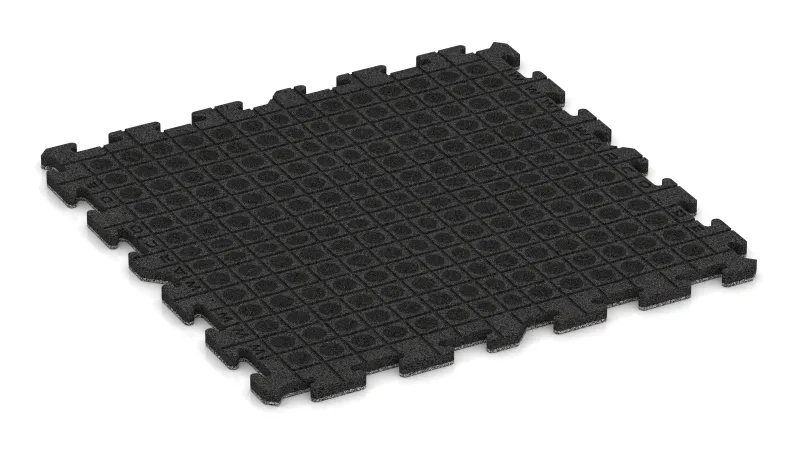 The playground flooring generates a pleasant, naturally warm ground feeling. It's well water-permeable, so that it doesn't seal the ground below and becomes quickly dry after a rainfall. The large-sized tiles can be laid quickly and in a stable way; in case of an unbounded ground, a base course made of plastic honeycomb grid is recommended.