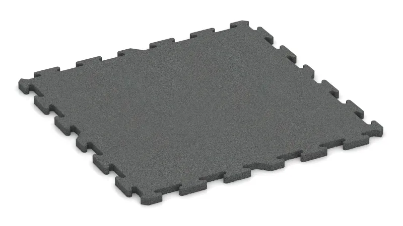 The playground flooring generates a pleasant, naturally warm ground feeling. It's well water-permeable, so that it doesn't seal the ground below and becomes quickly dry after a rainfall. The large-sized tiles can be laid quickly and in a stable way; in case of an unbounded ground, a base course made of plastic honeycomb grid is recommended.